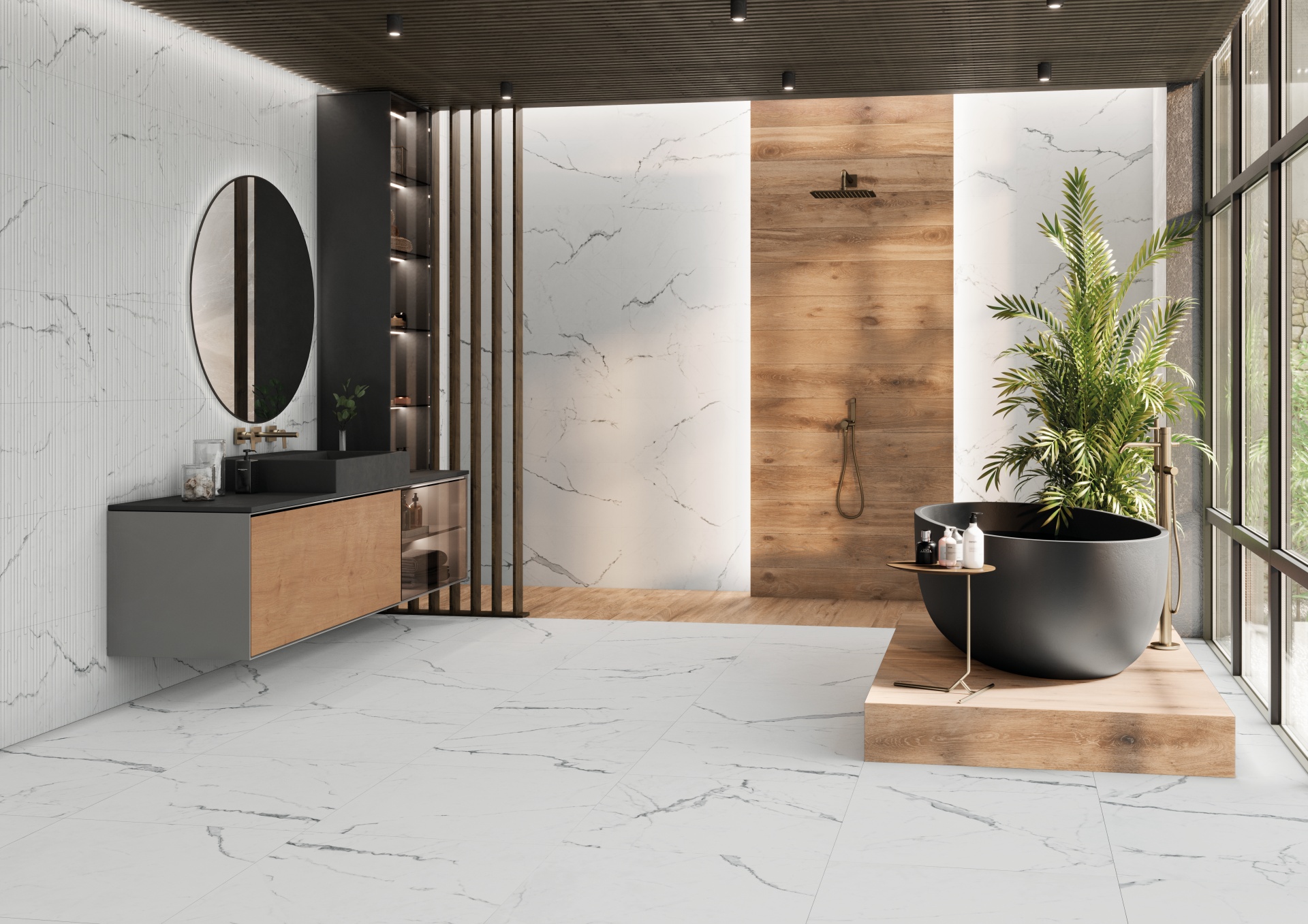 Le carrelage imitation marbre est un choix privilégié pour apporter une touche haut de gamme aux espaces intérieurs, tout en garantissant une excellente durabilité. Dans la salle de bain, il permet de créer une atmosphère élégante et lumineuse, sans les contraintes d’entretien du marbre naturel.