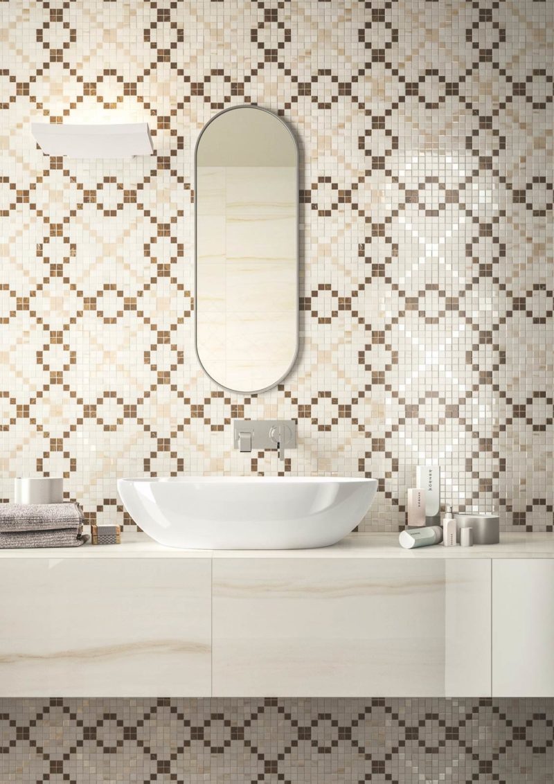 Pour le sol, la mosaïque offre également une surface antidérapante selon la finition, sécurisant les zones de passage tout en conservant un rendu élégant.